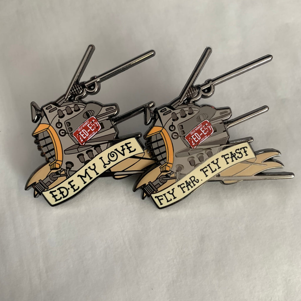 ⭐️ There are two variants, “FLY FAR, FLY FAST” and “ED-E MY LOVE” on the banner. They will be 54mm, hard enamel with screen printing.⭐️